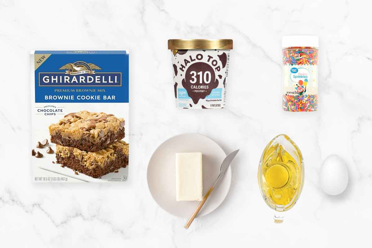 - Brownie cookie mix. Or any brookie mix. You'll need an egg, butter, water and oil if using the Ghiradelli brand or refer to your box of mix.