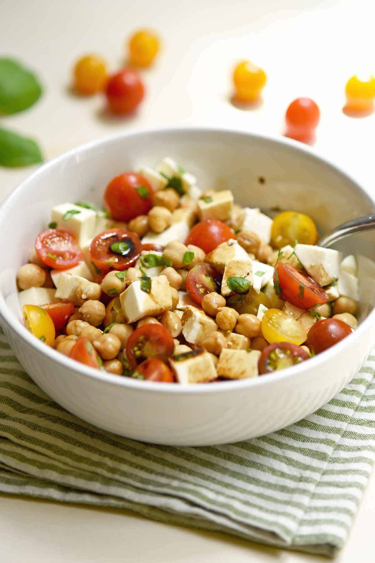 This recipe for Caprese Salad with Chickpeas is quick, easy and so tasty!