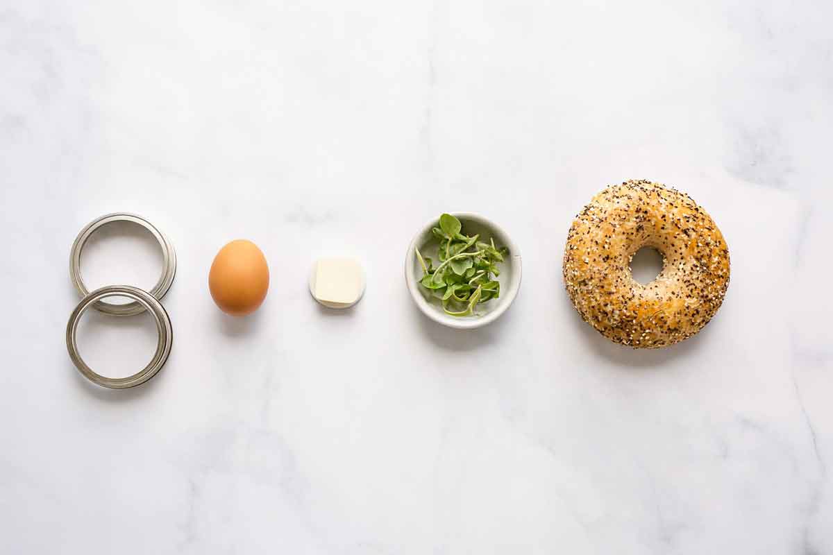 You'll just need an egg to make the poached egg but here's a look at everything you'll need to make a poached egg served on top of a toasted bagel.