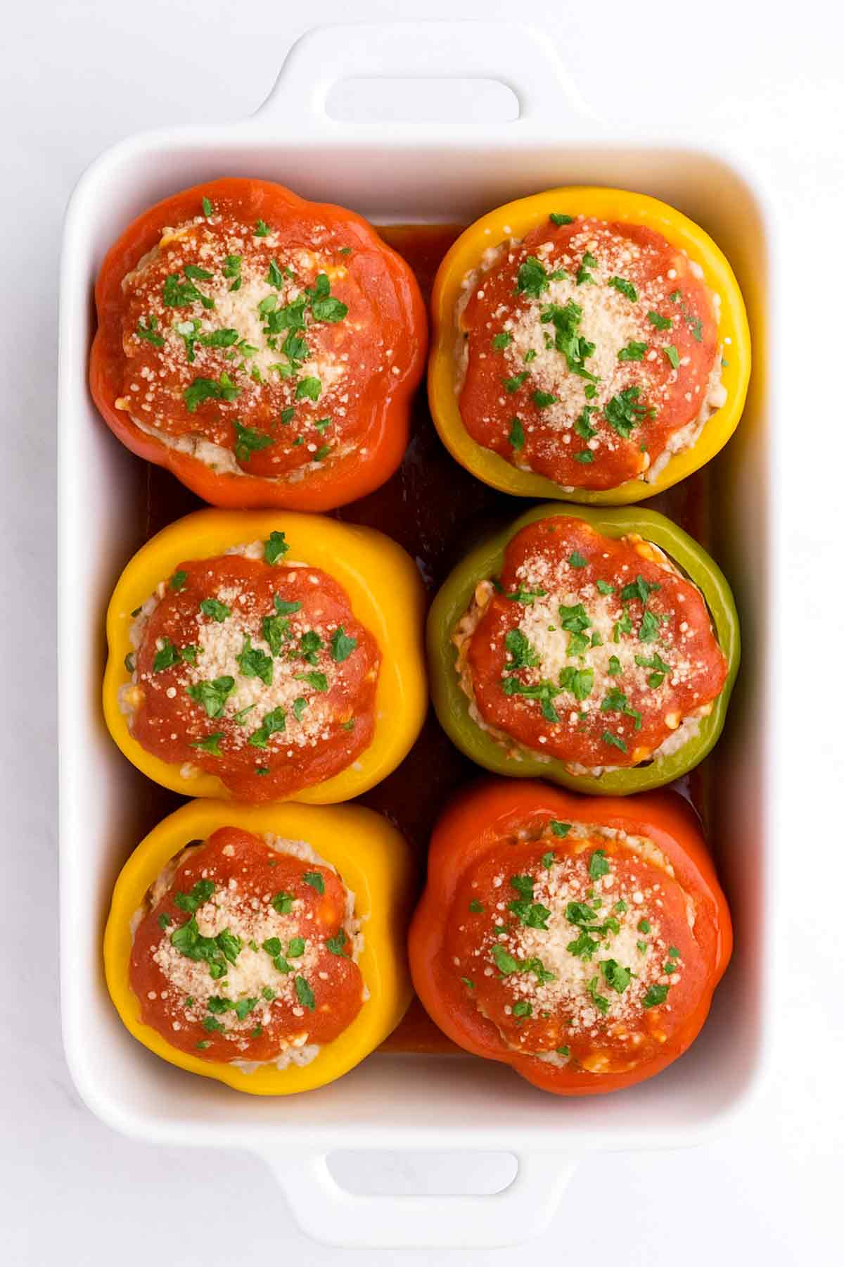Using lean ground turkey keeps the dish lighter than traditional beef-stuffed peppers. For extra richness, you can mix half turkey and half beef—giving you all the flavor without going overboard on calories.