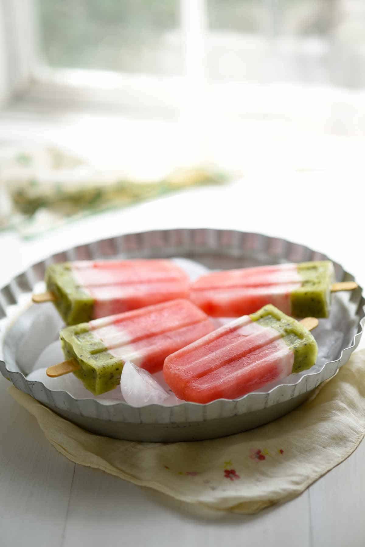 You're looking at it! These watermelon popsicles. Made with kiwi and yogurt, these are creamy and so satisfying on a hot summer day.