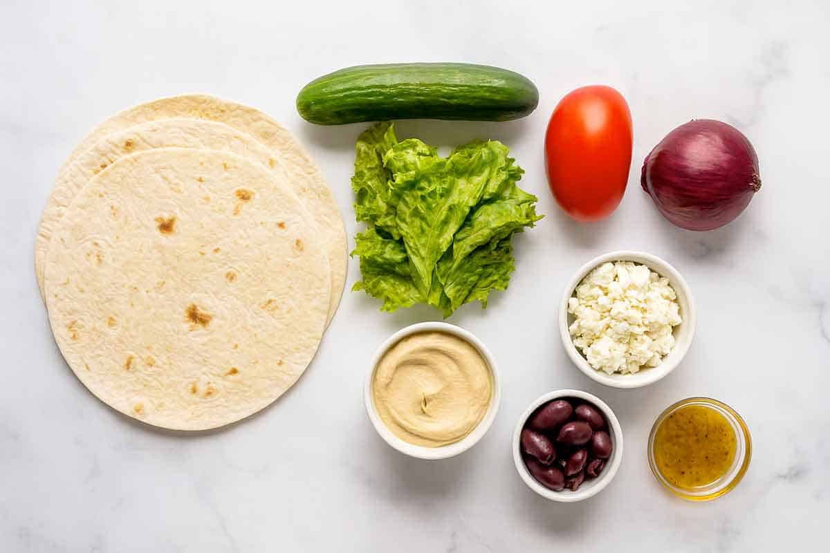 Here's a look at everything you'll need to make these no-cook Greek tacos.
