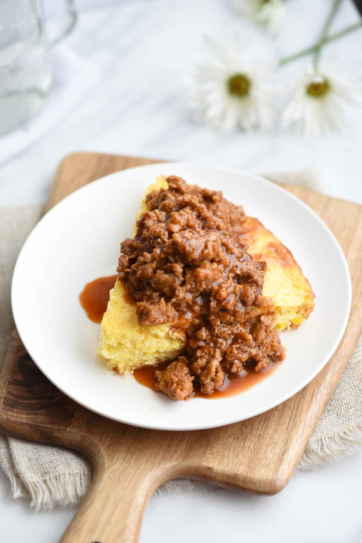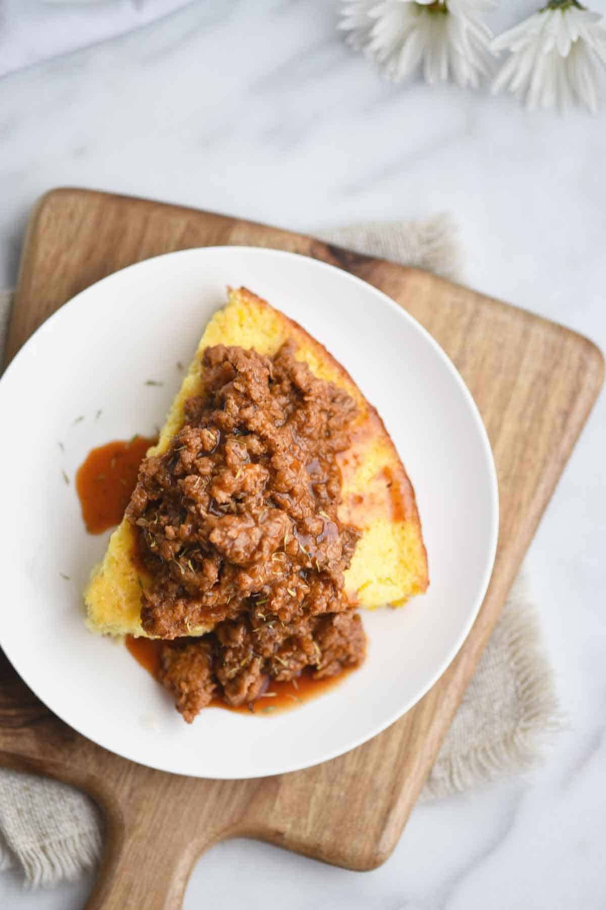 This barbecue ground pork over cornbread recipe was featured on South Your Mouth!