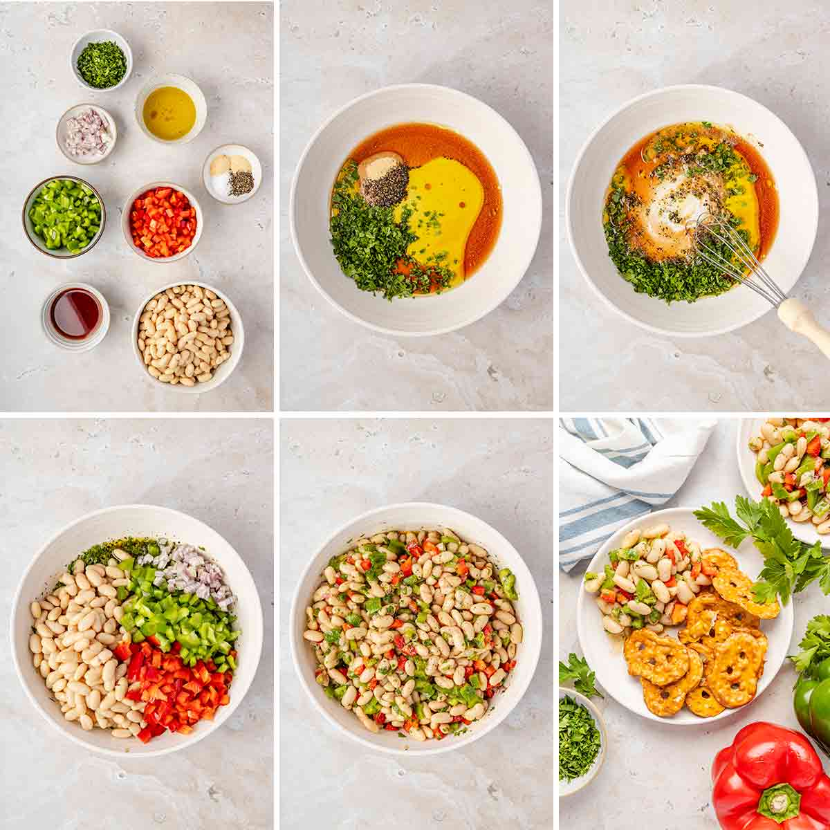 This bean salad can be served on its own or as a dip with crackers, chips, pretzels or toast. It also makes great as a side dish to meats like chicken, pork, or fish.